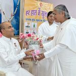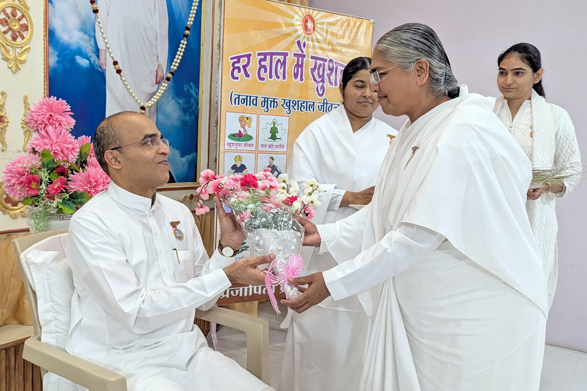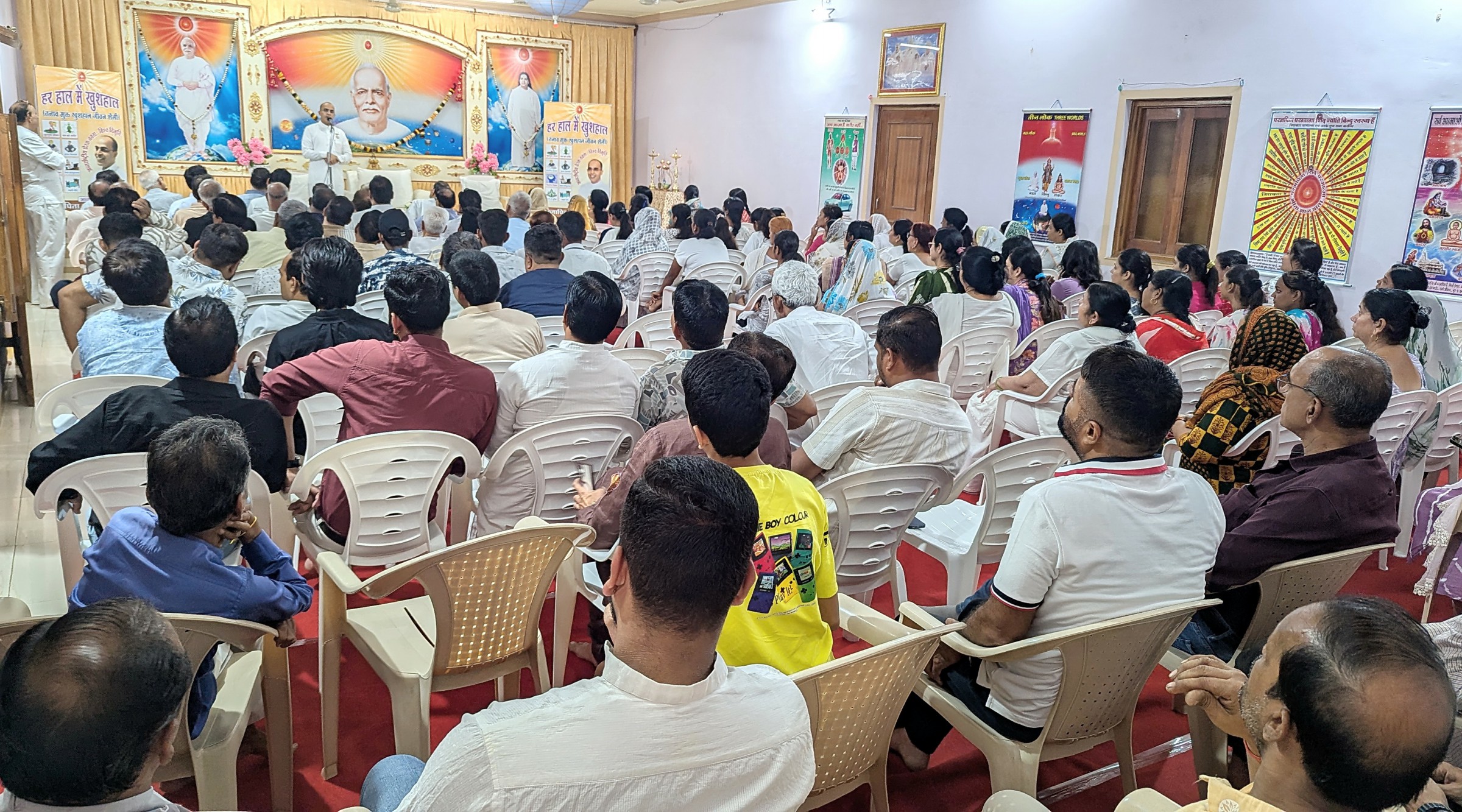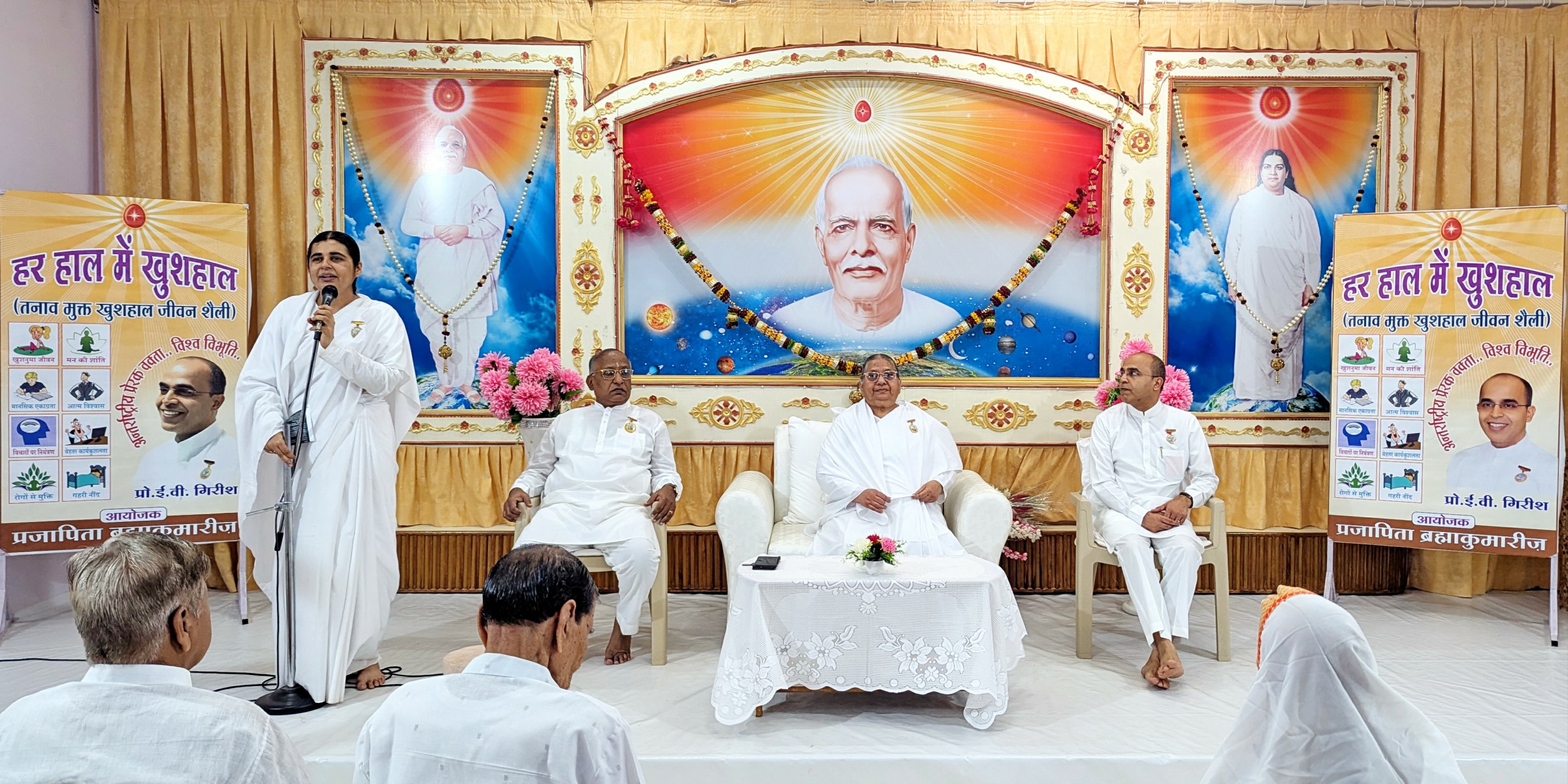 चित हो उठे । बार बार तालियों की गड़गड़ाहट ने उनके उद्बोधन की प्रशंसा की । कार्यक्रम के प्रमुख वक्ता माउण्ट आबू के बी.के.सूर्य भाई जी ने संकल्पों की उपयोगिता एवं संकल्पों की ही एकाग्रता से किस प्रकार बिगड़े काम भी बन जाते हैं, इस बात पर प्रकाश डाला तथा उपस्थित विशाल जनसमुदाय में से पूछे गए अनेक लोगों के प्रश्नों के उत्तर देकर उनकी समस्या का समाधान भी बताया । बी.के.रूपेश भाई ने अपनी जादू भरी आवाज़ में रनिंग कॉमेन्ट्री करके मेडिटेशन करवाकर सारे पाण्डाल को सुख, शांति एवं आनन्द की असीम गहराईयों की अनुभूति करवाई । कार्यक्रम के विशाल मंच पर ब्रह्माकुमारी संस्थान से पिछले 25 वर्षों से निरन्तर जुड़कर साधना व सेवा करने वाले भाई-बहनों का अभिनन्दन भी किया गया । कार्यक्रम का संचालन बी.के.श्रुति बहन के किया ।